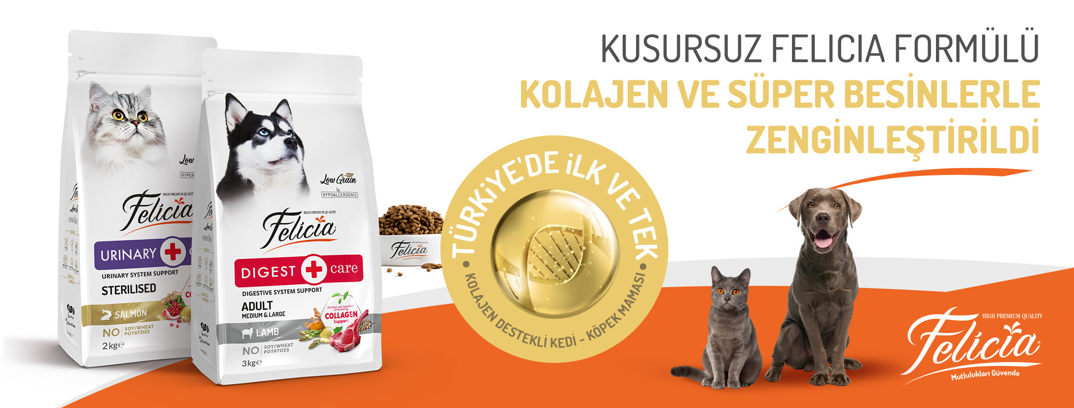 Kedi ve köpeklerin mutluluğu ve sağlığı için artık çok daha fazlası mümkün! Felicia, Türkiye’de bir ilke imza atarak kolajen destekli mamalarıyla evcil dostlarımızın yaşam kalitesini en üst seviyeye taşıyor.